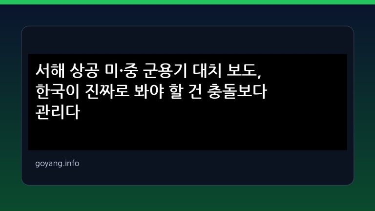 오늘의 단일 핵심 이슈인 서해 공역 미·중 군용기 대치 보도를 사실/해석 분리로 분석. 한국의 외교·안보 리스크를 ‘관리’ 관점에서 짚습니다.